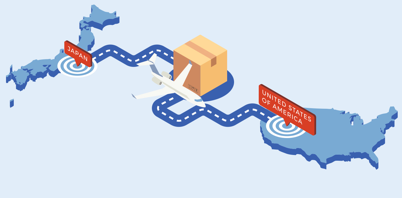 Amazon FBAを活用した越境EC向けFBA納品スキーム。輸送コストは従来のサービスに比べ大幅にダウン。アメリカのAmazonのFBA倉庫に最短でお届け可能。コスト、リードタイムともに圧倒的なアドバンテージをご提供いしたます。